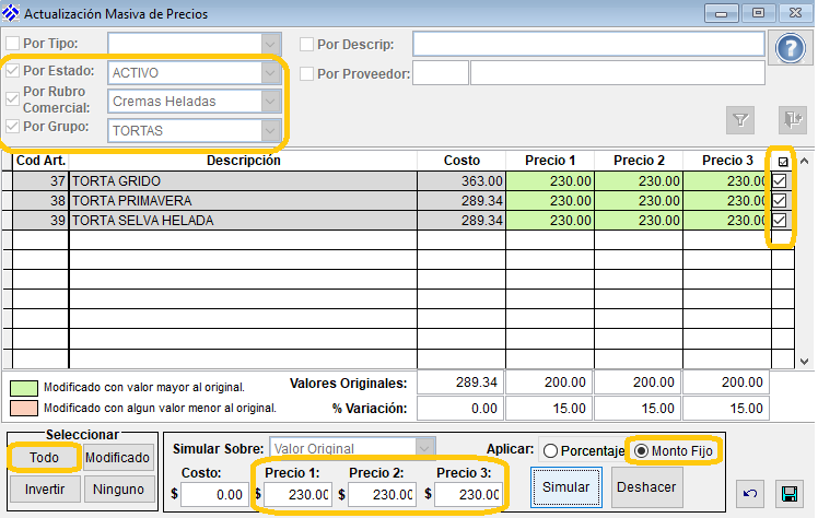 ¿Cómo realizo los cambios de precios masivamente?